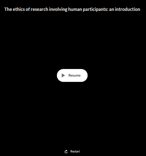 Selecting Restart will erase all previous progress, so learners should use this option with caution.
